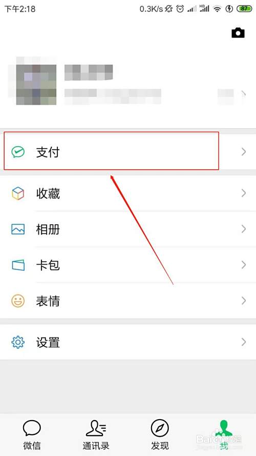 找到微信界面的“我”,点击支付功能