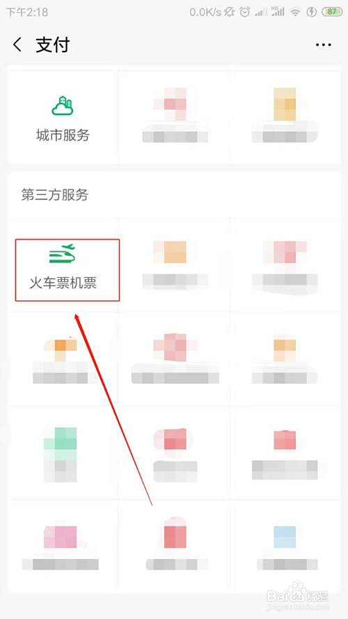 在支付功能界面往下拉,找到火车票机票图标