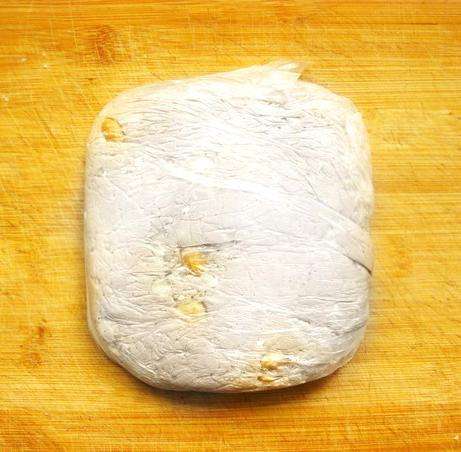 3混合好后迅速放入保鲜袋中,整理1厘米多高的方块