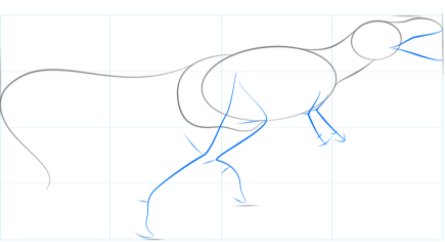 标记出异特恐龙宽度和高度。绘制两个椭圆形,这将有助于定义其头部和身体的位置。画一条线,作为嘴的上缘。