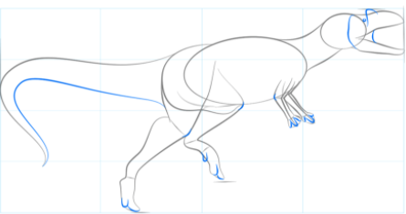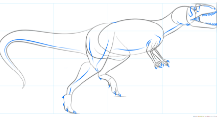 描绘恐龙轮廓,改变线的厚度和暗度。添加地面等更多细节。去除所有准则线。
