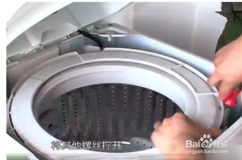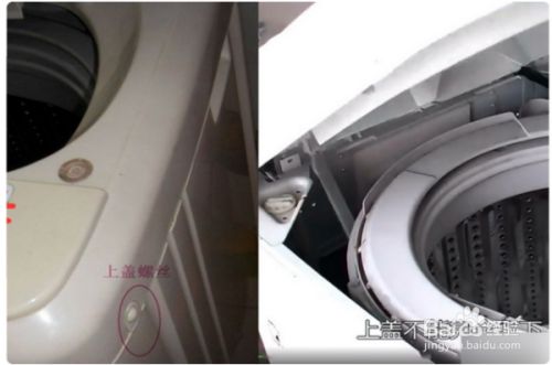 然后开始拆下盖子,洗衣机外侧左右各有一个螺丝,打开外壳并拧紧螺钉,后面有两个螺丝,也拧下来。拧下上盖外侧的4个螺钉后,即可抬起上盖。