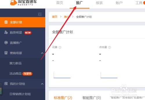 在淘宝后台,选中【营销中心】,再点击【我要推广】