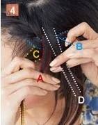从分界线开始,将刘海分成ABC三个部分,要等分