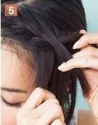 较少刘海的另外一侧,用同样的方法编发,然后黑色发卡固定住