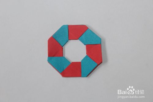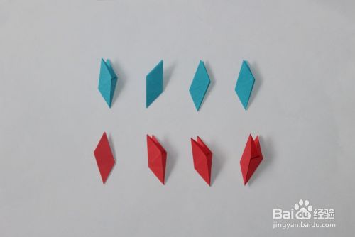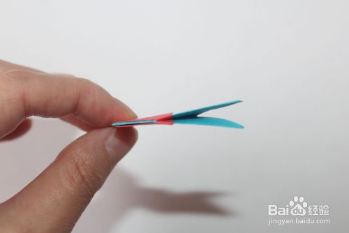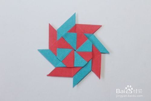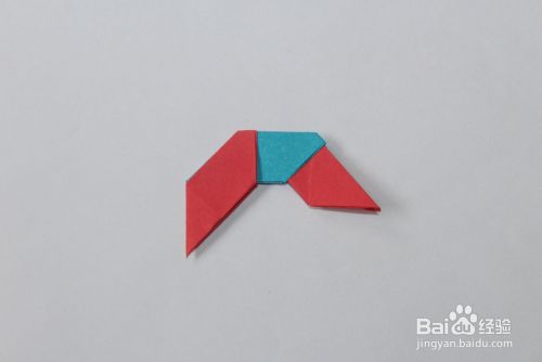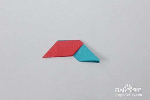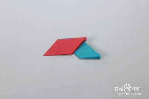 然后将红色多出的角,折叠到蓝色的缝里。