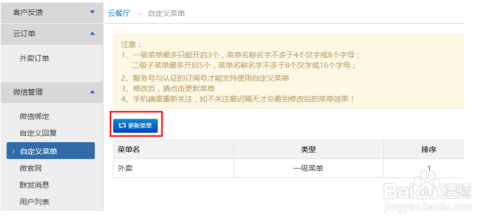 手机端需重新关注,如不重新关注最迟隔天才会看到修改后的菜单效果!