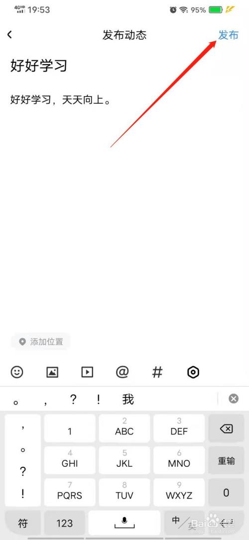 最后,输入标题和动态内容,点击“发布”即可。