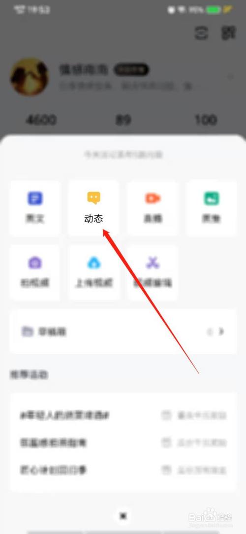 然后点击“动态”。