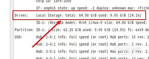 在device信息下可查看到磁盘空间。