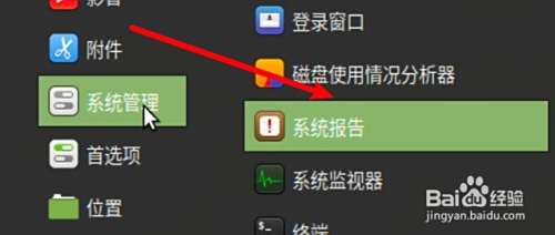 要查看linux磁盘空间,可以打开系统菜单的系统管理,点击系统报告,查看到磁盘空间。