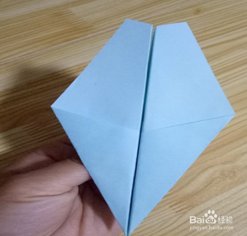 折纸翻翻过来,和步骤六同样的折法,折叠后形成尖尖的角作为机头。