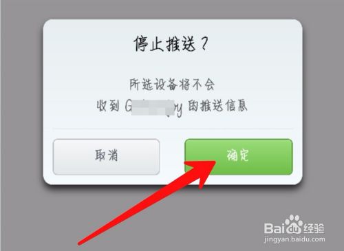 然后在弹出的新窗口点击【确定】再次确认停止推送,即可停止对该设备推送消息了。