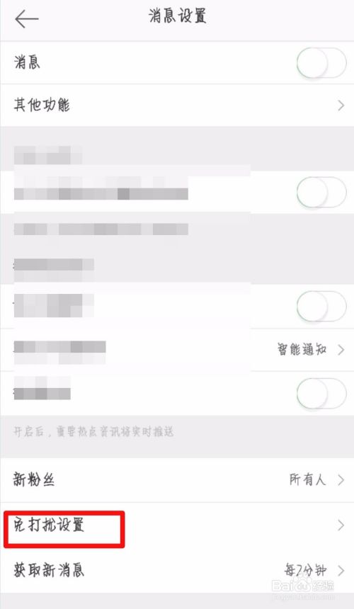 在消息设置页面点击打开【免打扰设置】进入下一个页面。