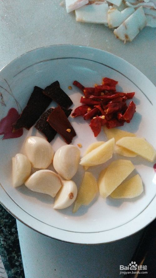 将姜蒜桂皮和干辣椒洗净切好备用;