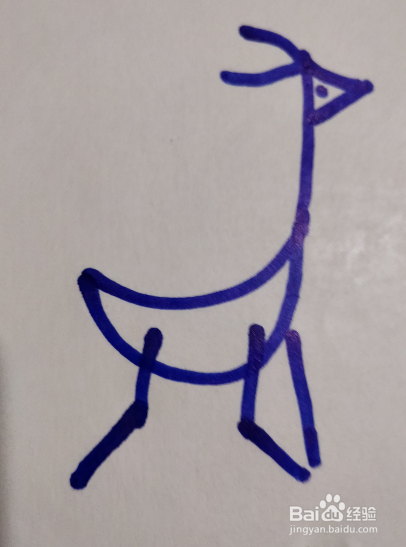 在弧线的右下侧,斜着往下画上一个短线,作为马鹿的腿。