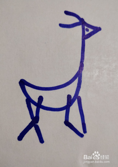 接着在其左侧,画上一个捺,作为马鹿的另一条后腿。