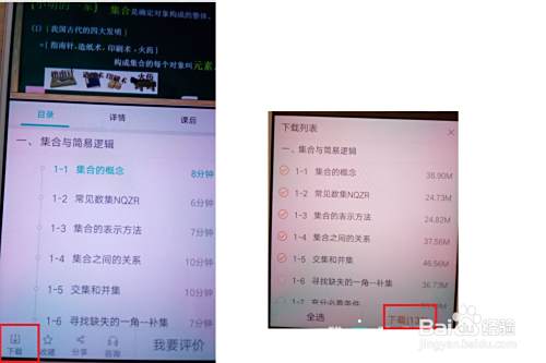登录之后,点击视频专区——我的课程——打开之前加入的视频教学课程——点击左下角的下载——勾选要下载的教学视频——点击下载就可以下载到手机上了。