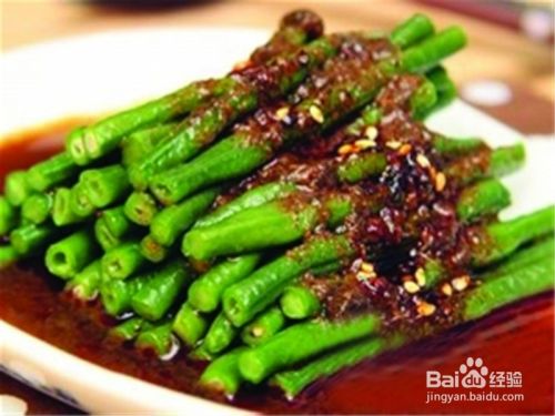 麻酱拌豆角原料:鲜豆角、芝麻酱、精盐、花椒油、姜末适量。 制法: 1.把豆角抽筋、折断、洗干净,在开水锅里绰熟后凉水浸泡,捞出控去水,放到调盘里。 2.再把芝麻酱用冷水调成糊状,把花椒油烧热,加人味精、精盐姜末浇在豆角上,拌匀即即装。