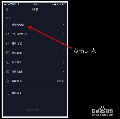 3.进入设置里面,往下找一下反馈与帮助,点进去