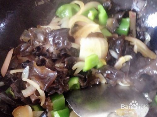 然后将洋葱和青椒倒入锅中,翻炒,加入盐,鸡精。