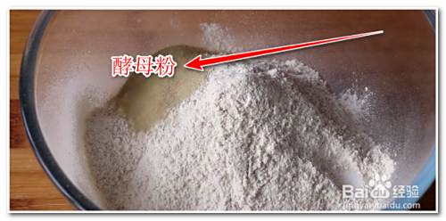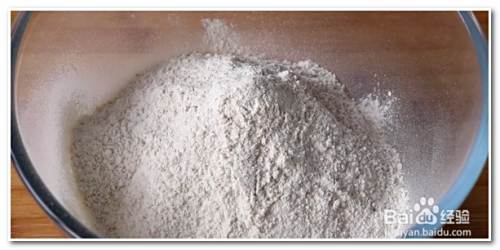 准备一个玻璃容器,置入全麦面粉300克,然后加入2克盐增加筋性。