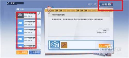 在好友的界面选择右上的【邮件】进行领取预约奖励就可以了哦。