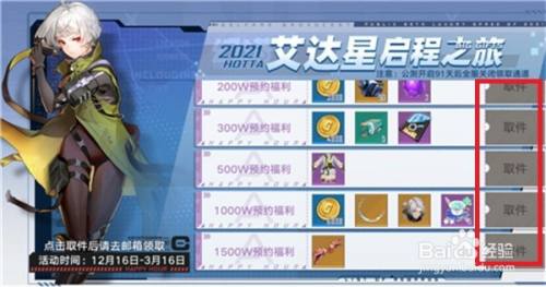 进入以后福利页面以后玩家们选择【启程补给】活动,然后点击右边【取件】,获得的奖励将会在邮箱中发放;