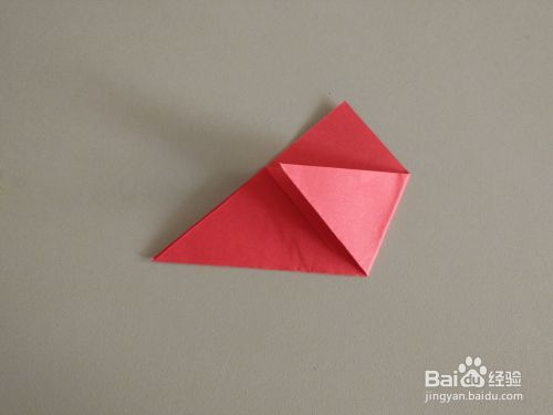 将上面的一个角向下折叠,注意不要折叠到底边,要留出一块,如果折叠到底边,会影响下一步的操作。