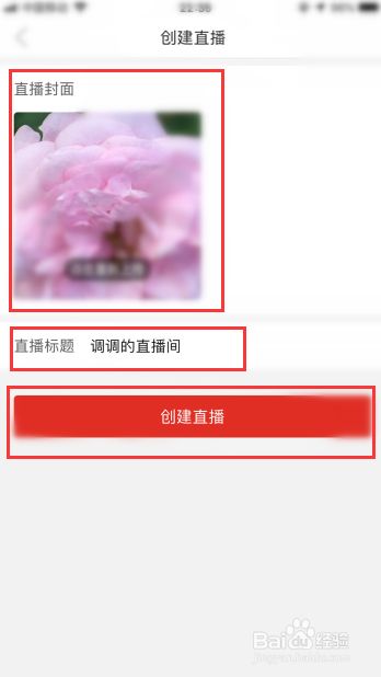 然后在直播封面下【上传封面】,在直播标题下输入【直播标题】。点击【创建直播】按钮。