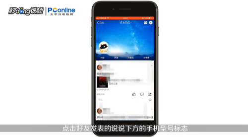 4点击动态,陕肥敏进入好友动态,点击好友发表的说说下方的手机型号标志,选择自己想要显示的手机型陵排号即可。