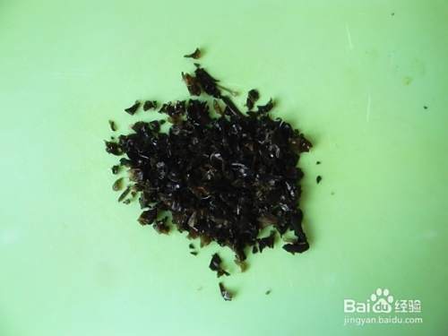 剁碎的木耳放入锅中