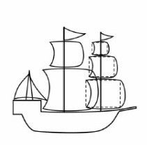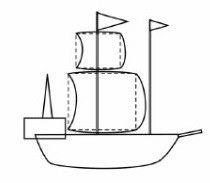 然后,以相同的方法画出右侧桅杆的船帆,略压中间的船帆。