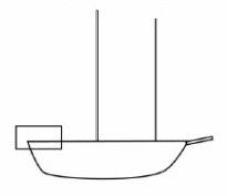 然后,我们绘制桅杆上的红旗,然后画中间桅杆的船帆,船帆可以画一个方框,然后在将两侧修改为两条弧线。