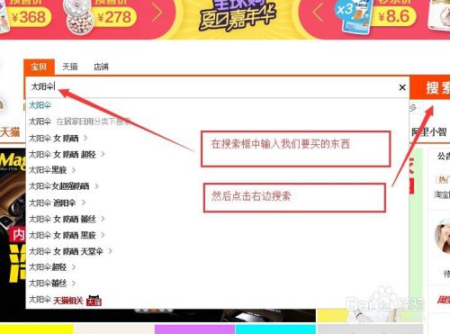 点击登陆,用我们刚才已经注册的帐号登陆,回到淘宝首页在搜索框中输入想买的宝贝,然后点击后面的搜索。