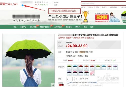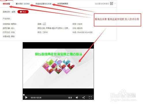 我们先来按照销量的排序选择一款宝贝,进去宝贝展示的主界面,这里面有宝贝的详细参数,颜色啊,月销量,库存多少,价格多少,其他买家的评价,卖家的宣传视频等,我们要仔细看这些参数,确保买到适合自己的宝贝。如果自己还是不清楚,这时候就要咨询卖家,点击旺旺这个图标就可以和卖家聊天啦。