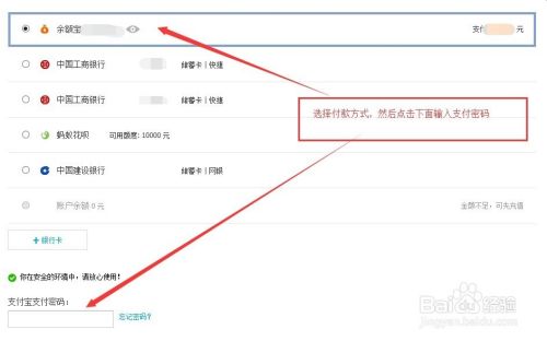 接着就会弹出叫你付款的界面,这个时候请注意需要改价格的买家在这里暂时不要付款,等卖家改价后刷新一下再进行付款,付款有多种方式,可以是支付宝余额,余额宝,也可以是银行卡等,不同付款方式界面不一样,这里演示余额宝的付款方式,在下面输入支付密码后会显示付款成功。
