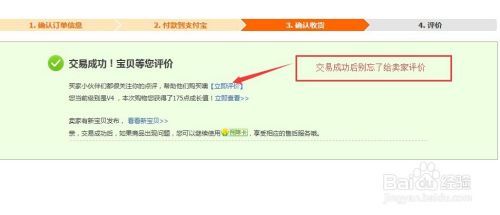 交易成功后还要给卖家评价,卖家也会给你评价的,好评的话信用分就+1,中评是0,差评是-1。一般我们都给好评。评价完整个交易也就完成了。大家都了解了吗?