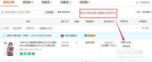 付过款后就等着卖家给你发货,这时候你付得款还没有到卖家的账户,只是到了第三方淘宝网的账户,这是为了交易安全。卖家发货后会显示“卖家已发货”的状态。这个时候就可以关注下快递的物流情况。