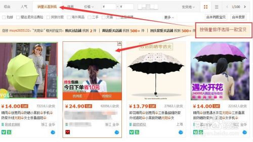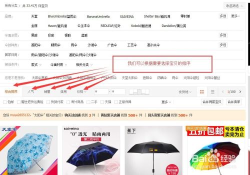 搜索过后会有很多宝贝跳出来,是不是有些眼花缭乱呢,不要急,我们可以根据销量,信用,人气来把这些商品排序,还可以选择上面的商品的品牌,种类等各种分类来寻找自己满意的宝贝。