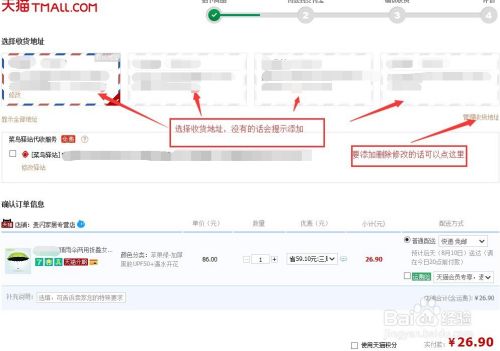选择好要买的宝贝后可以选择加入购物车继续选择其他宝贝,也可以选择立即购买。加入购物车后可以和其他宝贝一起付款。点击付款后会出现选择收货地址,没有的新会员,系统会提示你输入收货地址的。想要变更,添加,删除收货地址的可以点击管理收货地址。