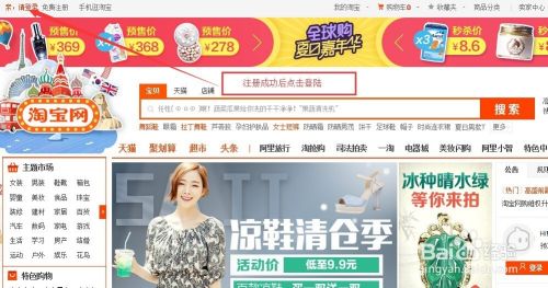 首先我们在浏览器输入淘宝网的官方网址www.taobao.com,进入淘宝网后先进行注册,按照注册提示,一步一步完成会员的注册,这里不再赘述。