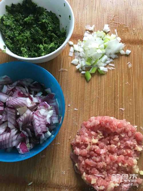 把馅料 备好 可依个人喜好 加入喜欢的材料 放油炒熟 加入调味品