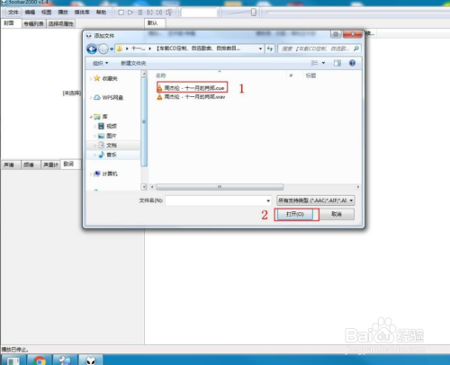 然后在弹出的添加文件对话框中,找到并选中整轨音乐中以.cue为后缀的文件,并点击打开。