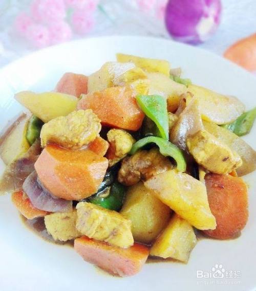 没吃过咖喱以前我一直以为咖喱是一种食品,后来有机会见识和品尝以后才知道咖喱是由多种香料调配而成的酱料。咖喱是一种以姜黄为主料,另加多种香辛料(如芫荽籽、桂皮、辣椒、白胡椒、小茴香、八角、孜然等)配制而成的复合调味料。其味辛辣带甜,具有一种特别的香气。因咖喱菜味道浓郁爽口,各种咖喱菜的制作方法也简单,咖喱菜肴成为了年轻一族喜爱的菜肴。上次买了味好美的咖喱粉,但是它的味道不大好,家里人都不爱吃,这次把这瓶开启的咖喱粉消灭掉。这道咖喱鸡有人认为用鸡腿肉口感会更好,但是我们都知道鸡腿上或多或少都有一些脂肪在上面。而鸡胸肉所含的脂肪和卡路里都要明显低于鸡腿肉。