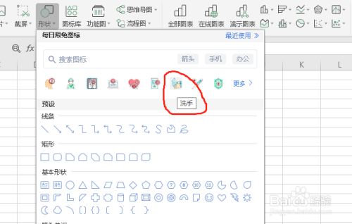 excel文档怎么插入自带的洗手图形