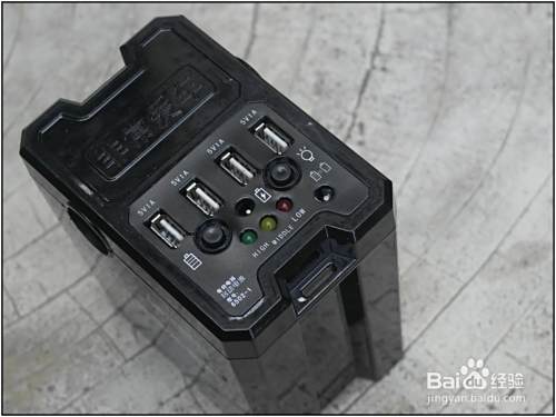 这是一款块头较大,重量也不轻的移动电源,主打车载为各类电器进行应急供电。