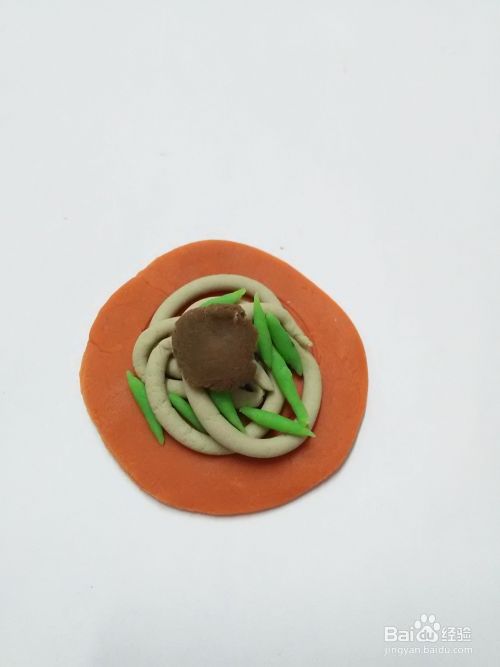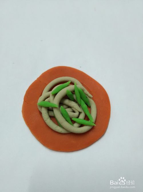 先用桔色彩泥捏一个大大的圆形,当作盘子。