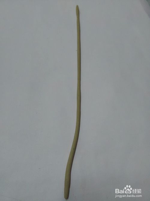 将白色搓一个细细的长条,尽量长一些,当作面条。