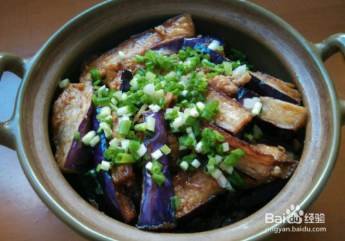 另起锅把肉末和茄子一起倒入锅中翻炒一分钟,装入砂锅里面,加少许的清水,盖上盖子闷三分钟,最后再撒些葱花就可以出锅了